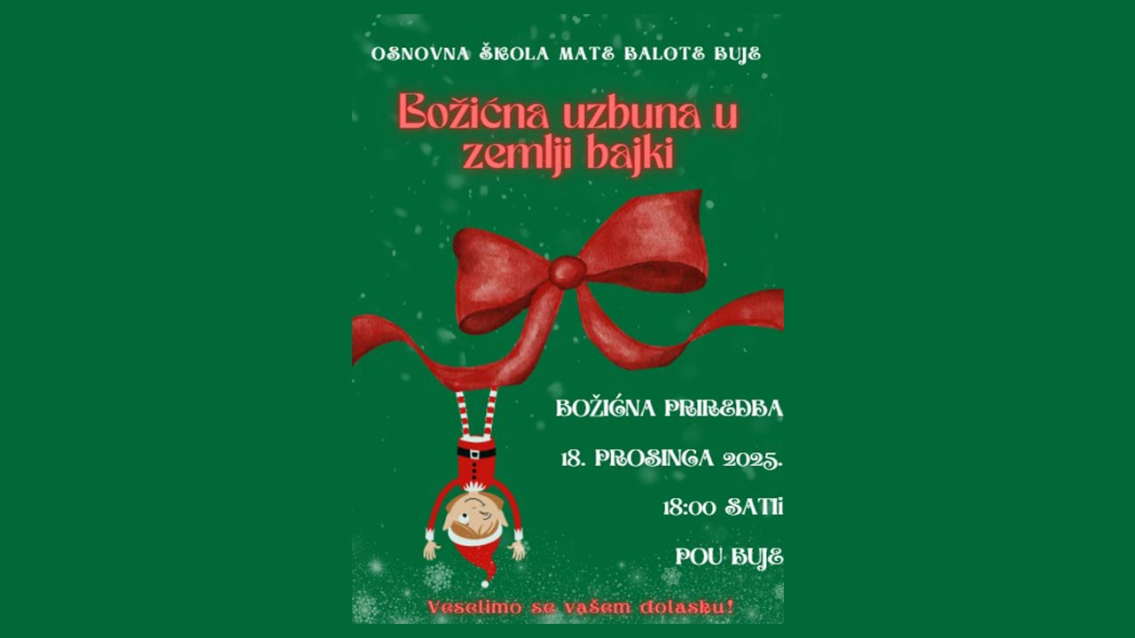 POU Buje i OŠ Mate Balote Buje organiziraju božićnu priredbu 18. prosinca 2025. u 18 sati u POU Buje. Pozvani su svi građani.