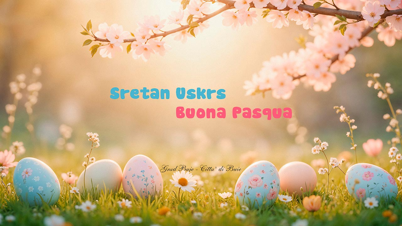 Grad Buje svojim sugrađanima upućuje uskrsnu čestitku, uz poruku mira, solidarnosti i nade te želje za radošću i zajedništvom u krugu najbližih.