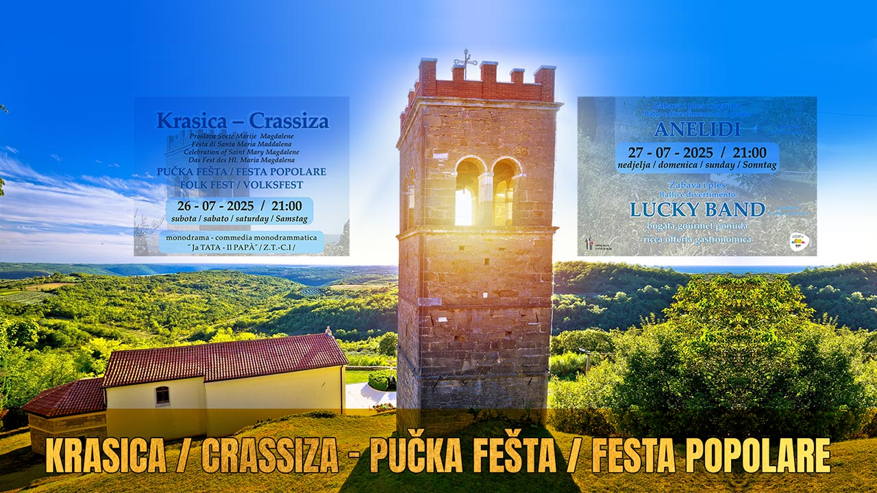 Krasica će krajem srpnja biti domaćin tradicionalne pučke fešte povodom proslave Svete Marije Magdalene. Na igralištu u Krasici očekuje vas bogat program, zabava i odlična glazba.