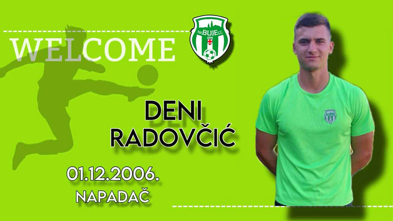 U Buje dolazi Deni Radovčić, mladi napadač koji je svoj nogometni put gradio u Jadranu iz Poreča i Istri 1961, a prošle sezone nosio je dres NK Medulin.