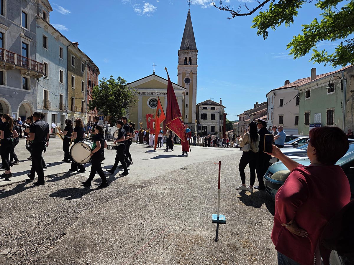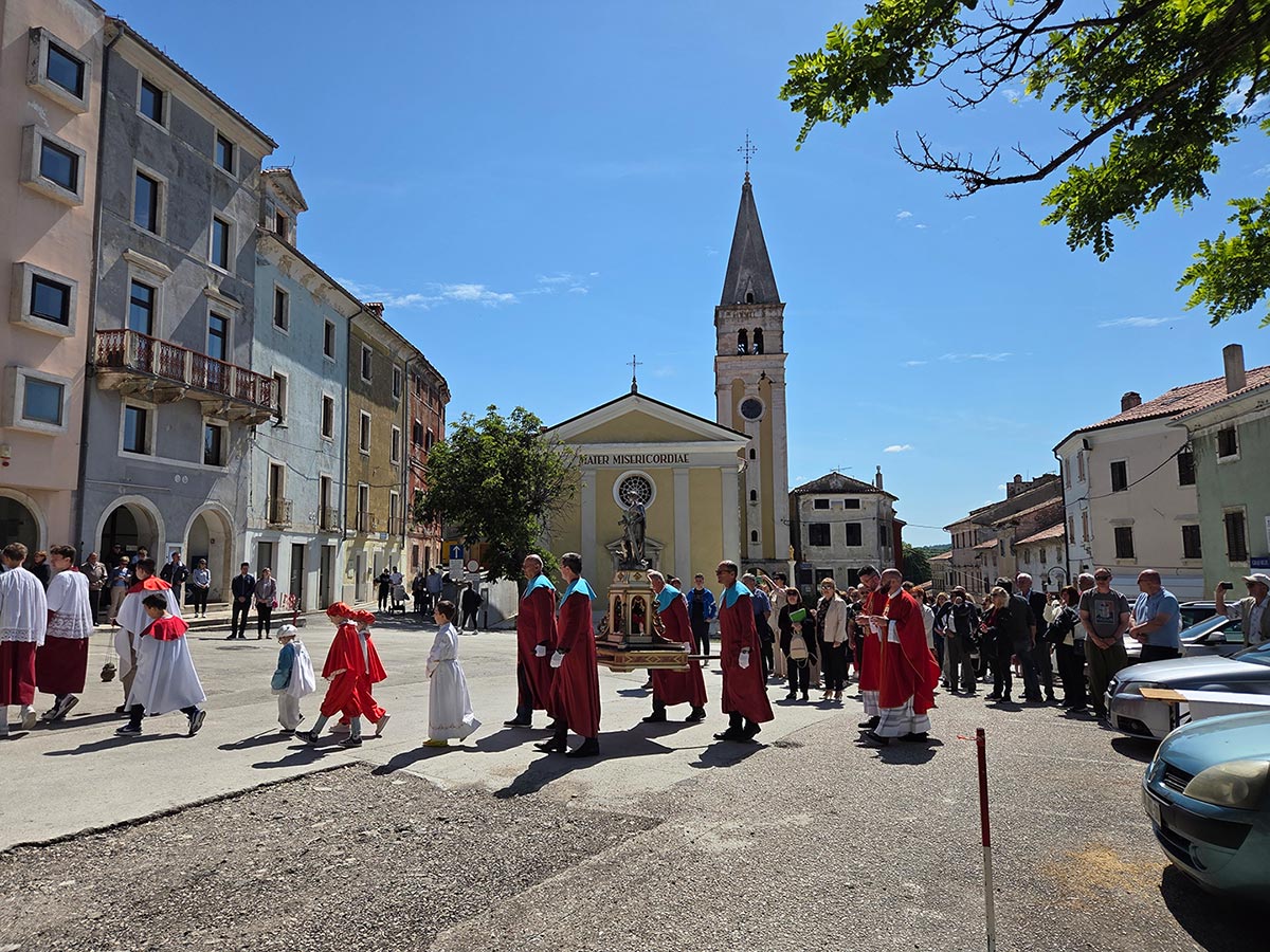 Dopo la benedizione davanti alla chiesa, il corteo si è diretto verso la chiesa parrocchiale di San Servolo, dove si è celebrata la messa solenne. Erano presenti numerosi fedeli di Buje, ospiti delle parrocchie vicine e rappresentanti delle autorità locali.