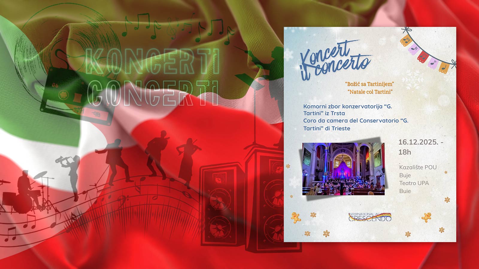 Božićni koncert Komornog zbora Konzervatorija G. Tartini iz Trsta održava se 16. prosinca 2025. u Kazalištu POU Buje. Ulaz je slobodan.