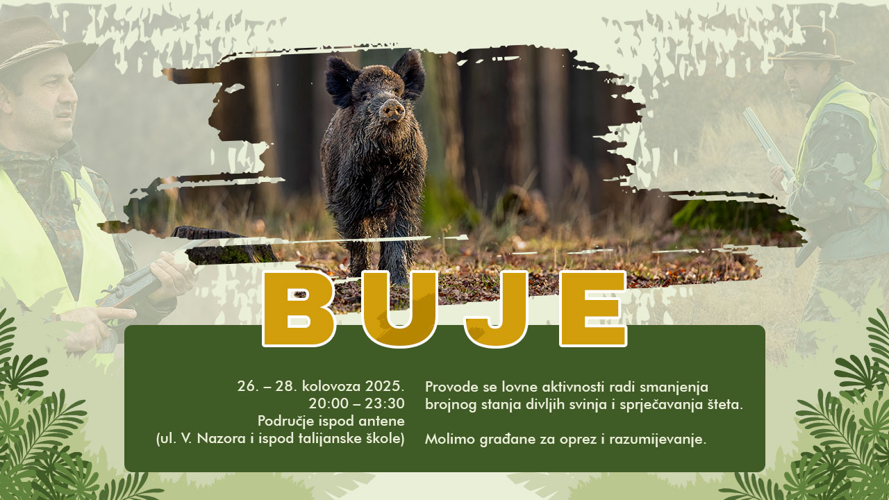 Obavještavamo vas da će se od 26. do 28. kolovoza 2025. godine, u vremenu od 20:00 do 23:30 sati, na području grada Buja...