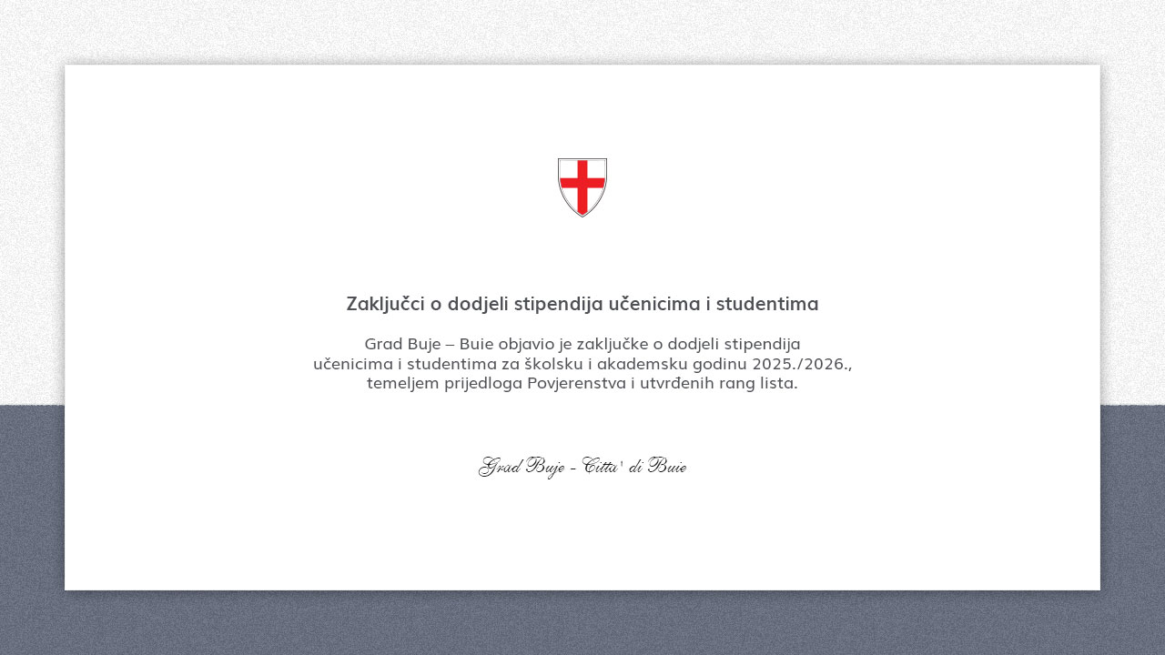 Grad Buje – Buie objavio je zaključke o dodjeli stipendija učenicima i studentima za školsku i akademsku godinu 2025./2026., temeljem prijedloga Povjerenstva i utvrđenih rang lista.