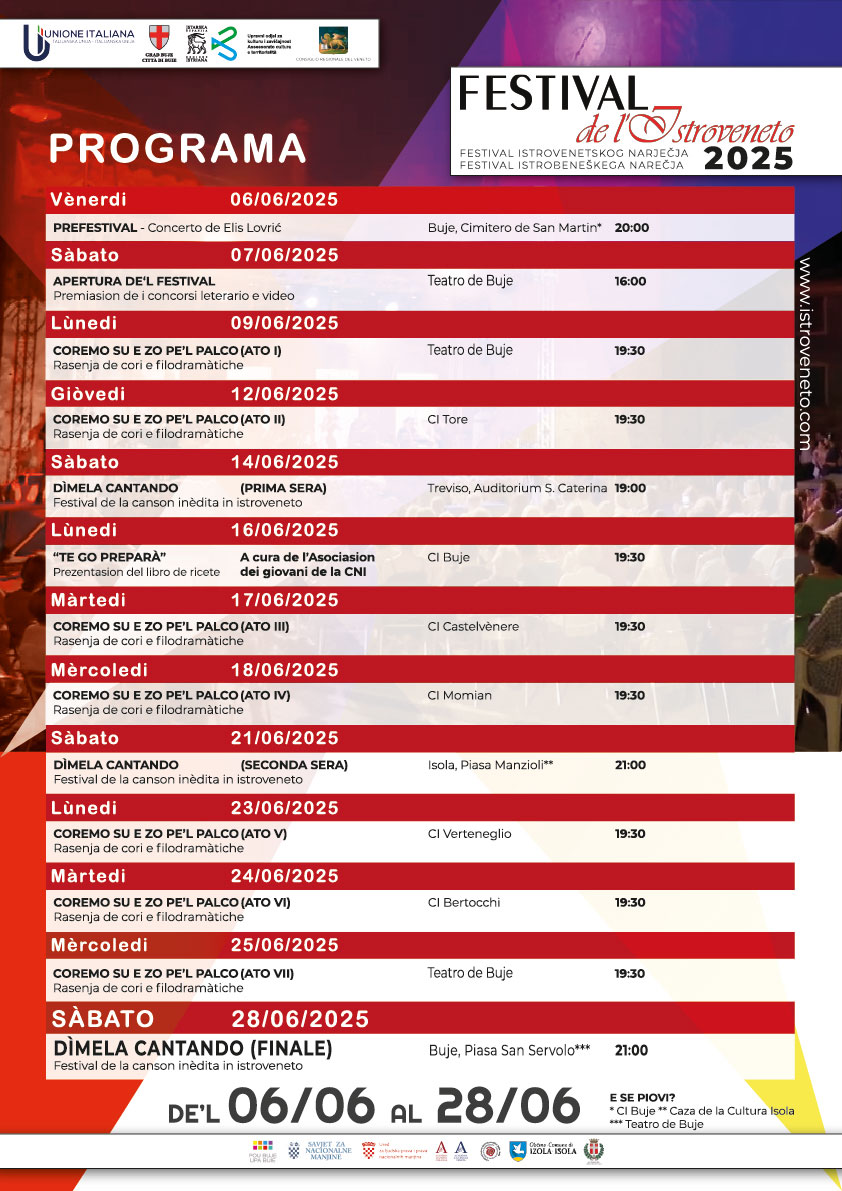 Venerdì 6 giugno 2025 inizia la quattordicesima edizione del FESTIVAL DELL’ISTROVENETO.
